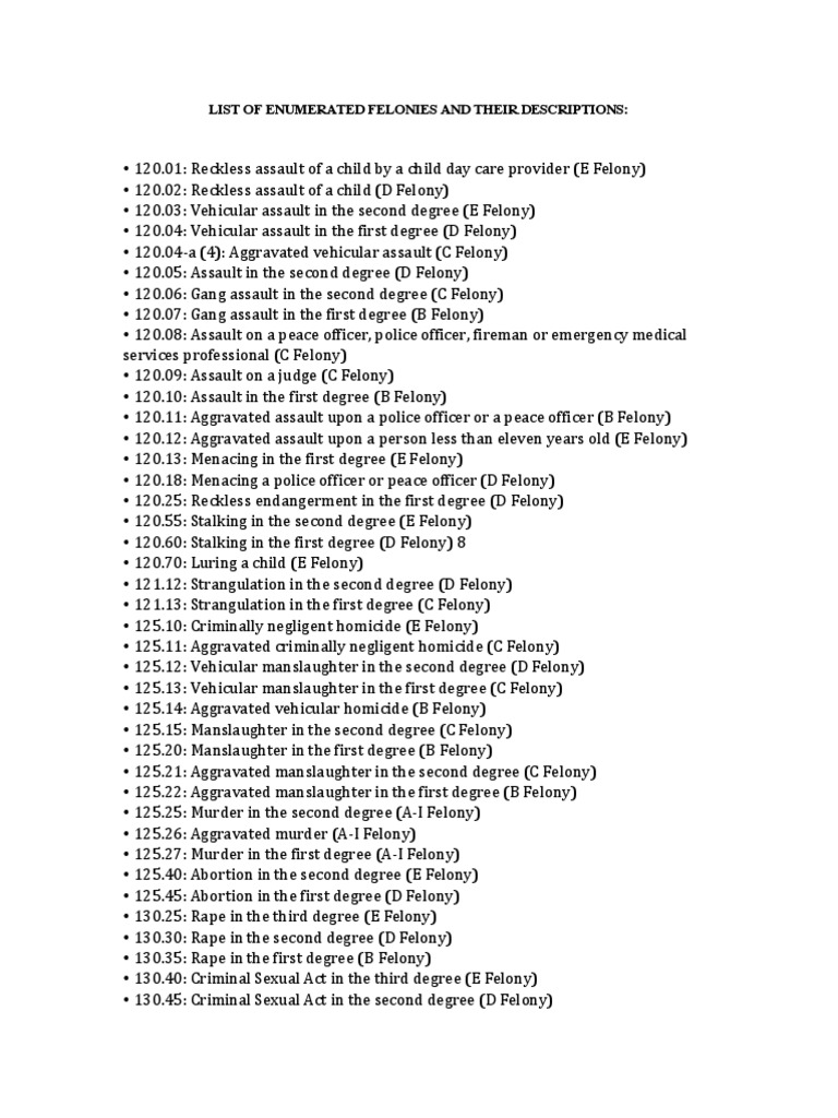 List of Enumerated Felonies and Their Descriptions PDF Murder Assault